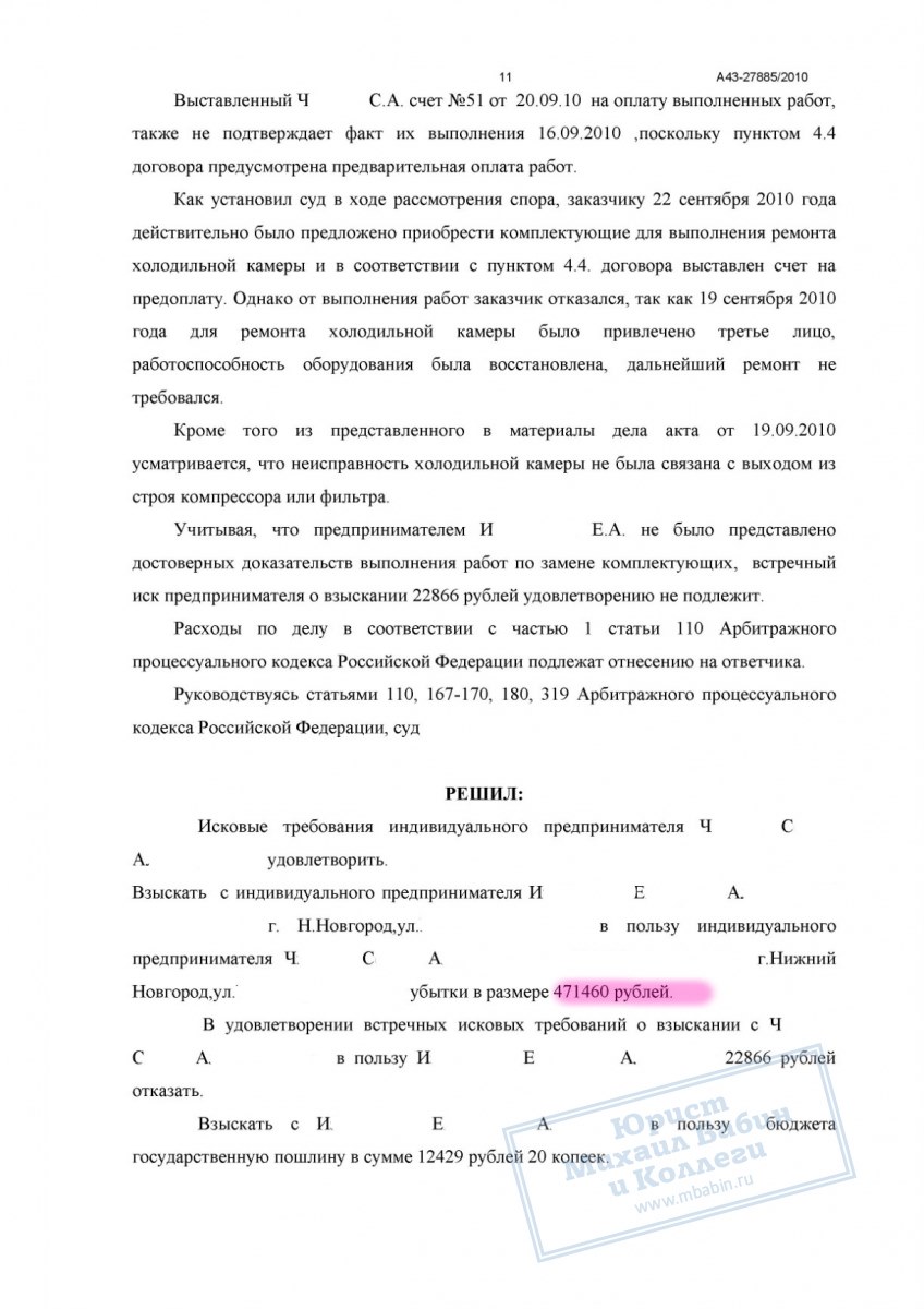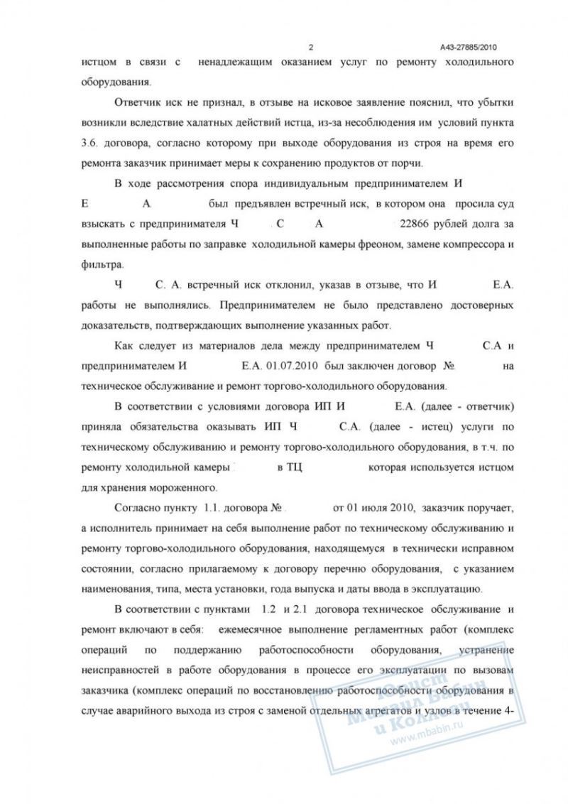 Суд удовлетворил исковые требования ИП Ч. в полном объёме. С ИП И. взысканы: