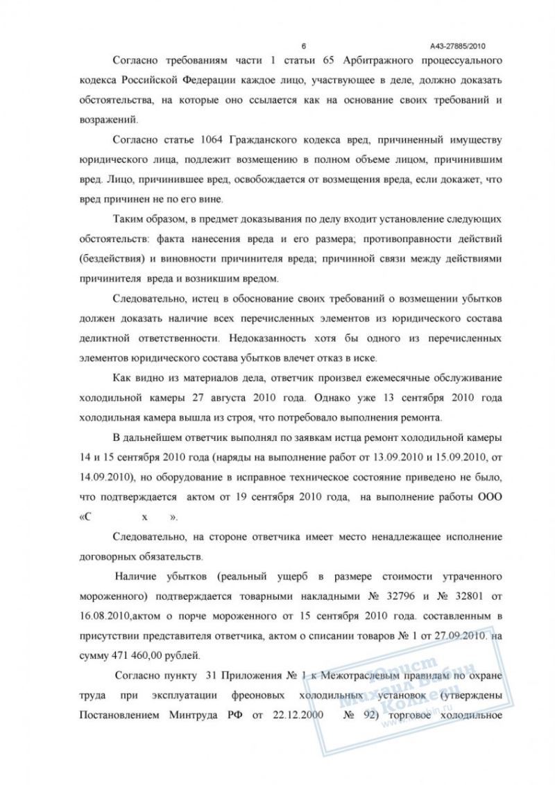 Ч. обратился в арбитражный суд с иском о взыскании убытков. Юрист подготовил пакет документов, подтверждающих факт некачественного оказания услуг. В ходе судебного разбирательства ответчик возражал против удовлетворения иска, ссылаясь на отсутствие доказательств того, что порча товара произошла именно по его вине.