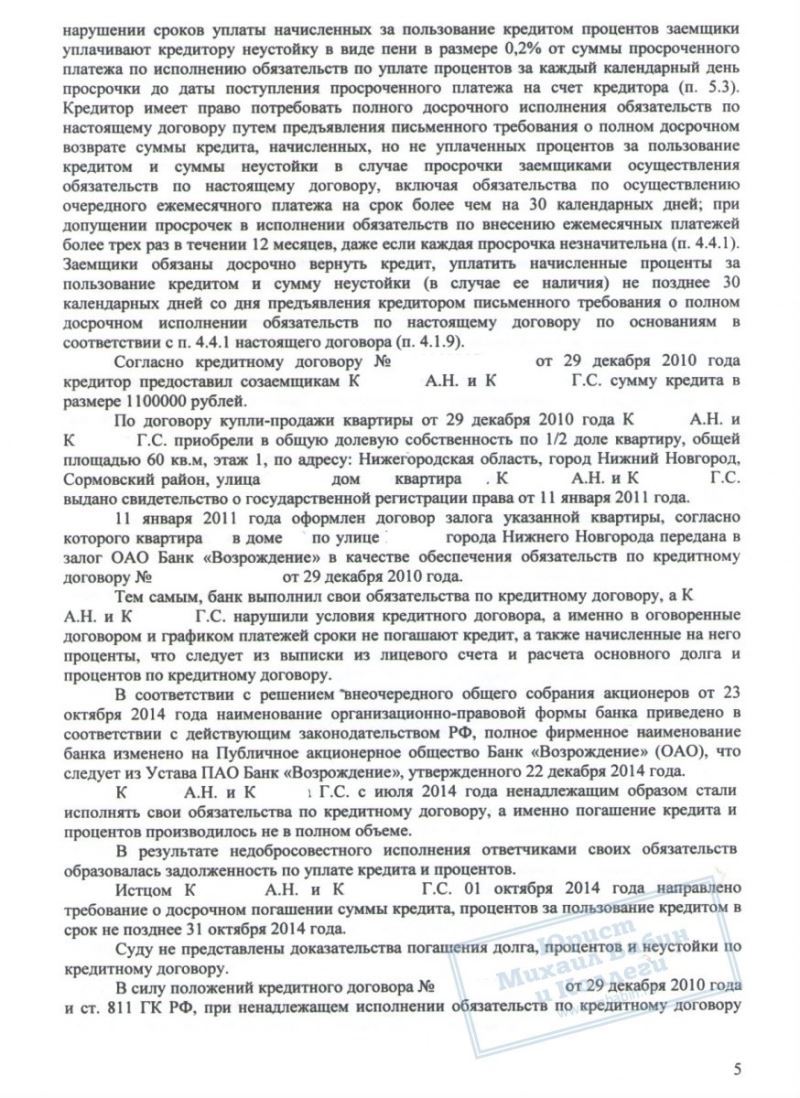 Несколько лет супруги К. выплачивали ипотеку, но начали допускать просрочки выплат - и банк потребовал досрочно вернуть весь оставшийся долг, а именно 1.020.000 руб. Естественно, такой суммой К. не обладали, и задолженность должна была быть возвращена путем ареста и продажи банком их жилплощади. При этом её стоимость была определена всего в 1.680.000 руб. То есть почти все деньги от квартиры должны были уйти на оплату долга.