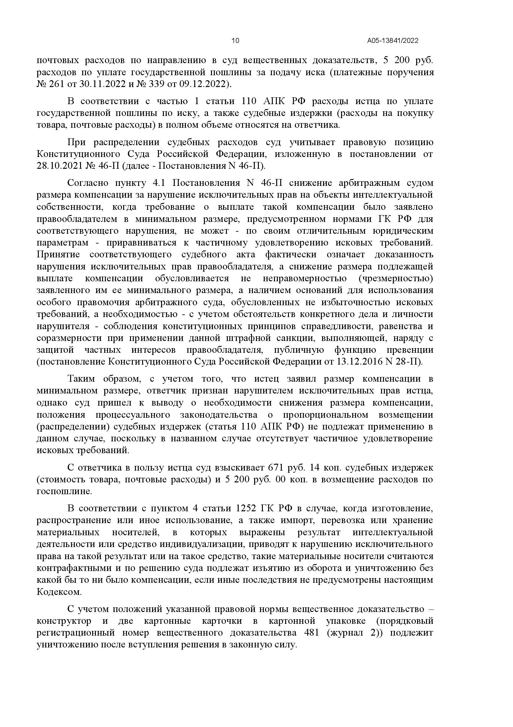Также защита ссылалась на возможность снижения компенсации на основании пункта 3 статьи 1252 ГК РФ, поскольку все права принадлежат одному правообладателю.