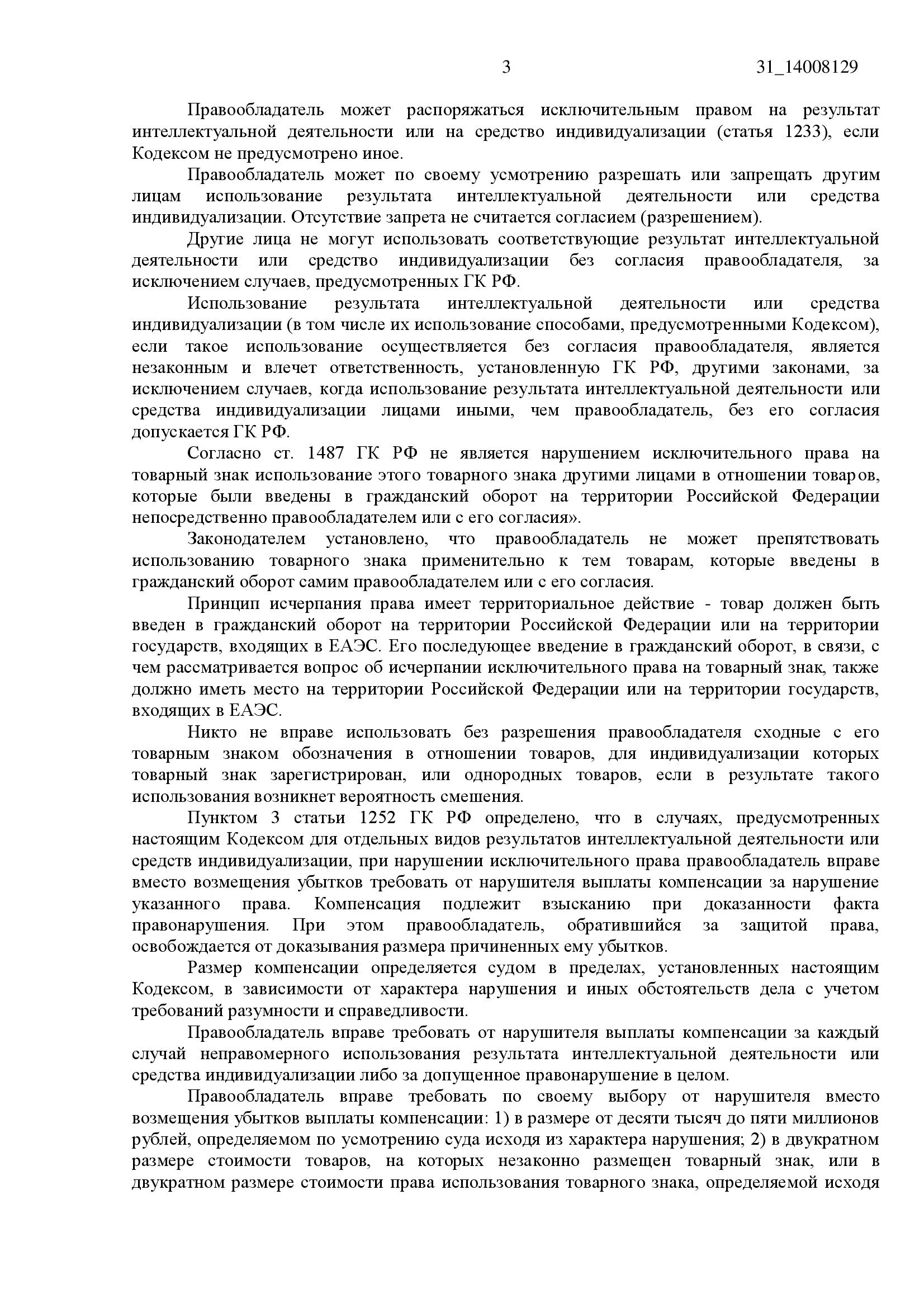 Дело о взыскании компенсации за нарушение исключительных прав на товарный знак