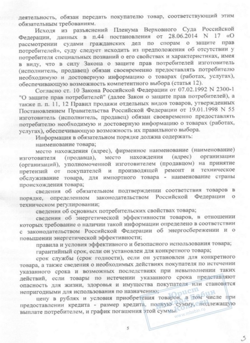 • С магазина взыскана трехкратная стоимость товара и судебные расходы